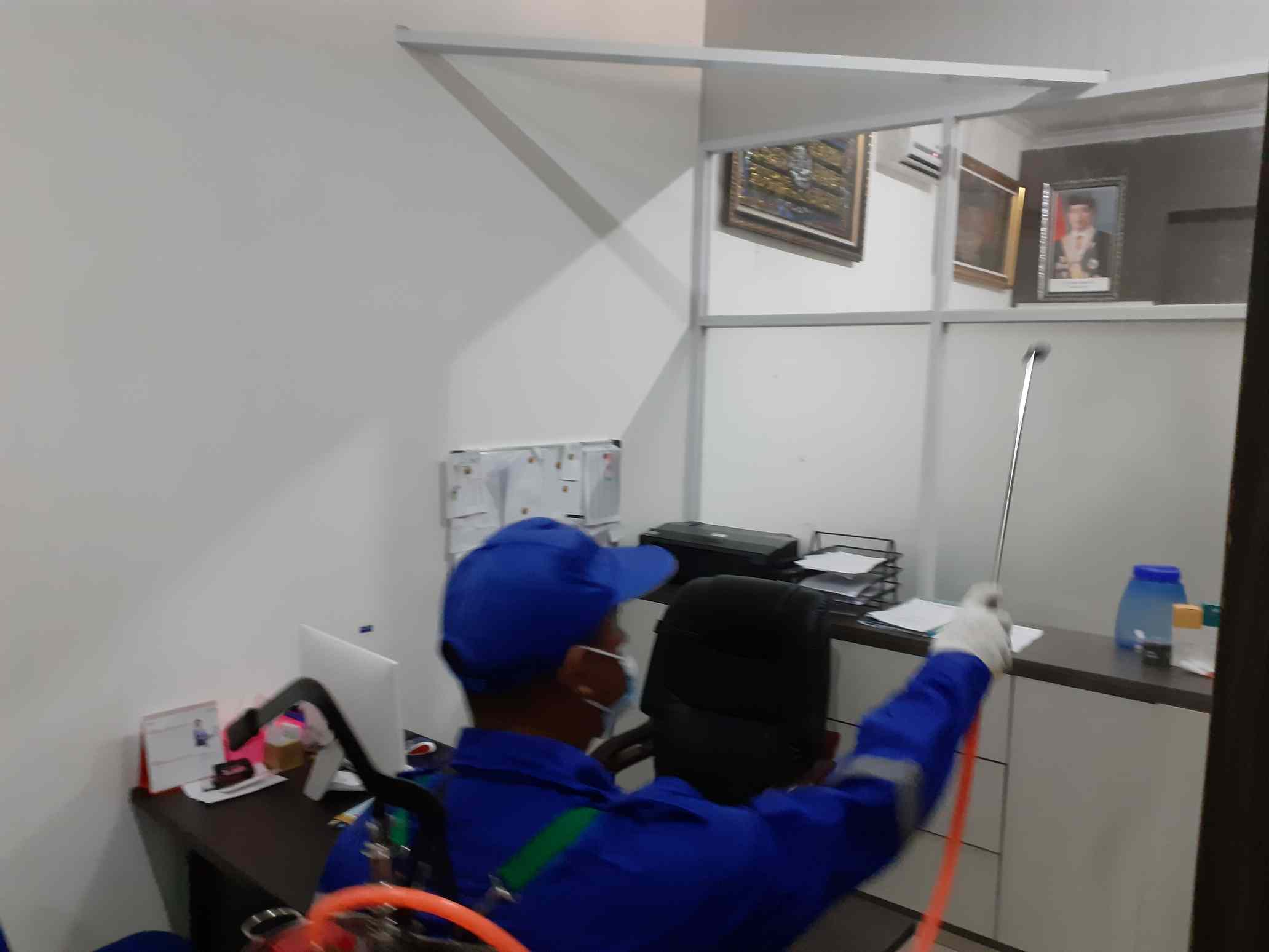 Petugas saat penyemprotan desinfektan di ruangan lainnya