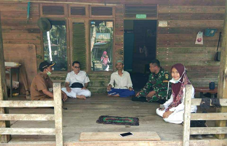 Kepala Desa Kuala Indah dan petugas saat di rumah warga