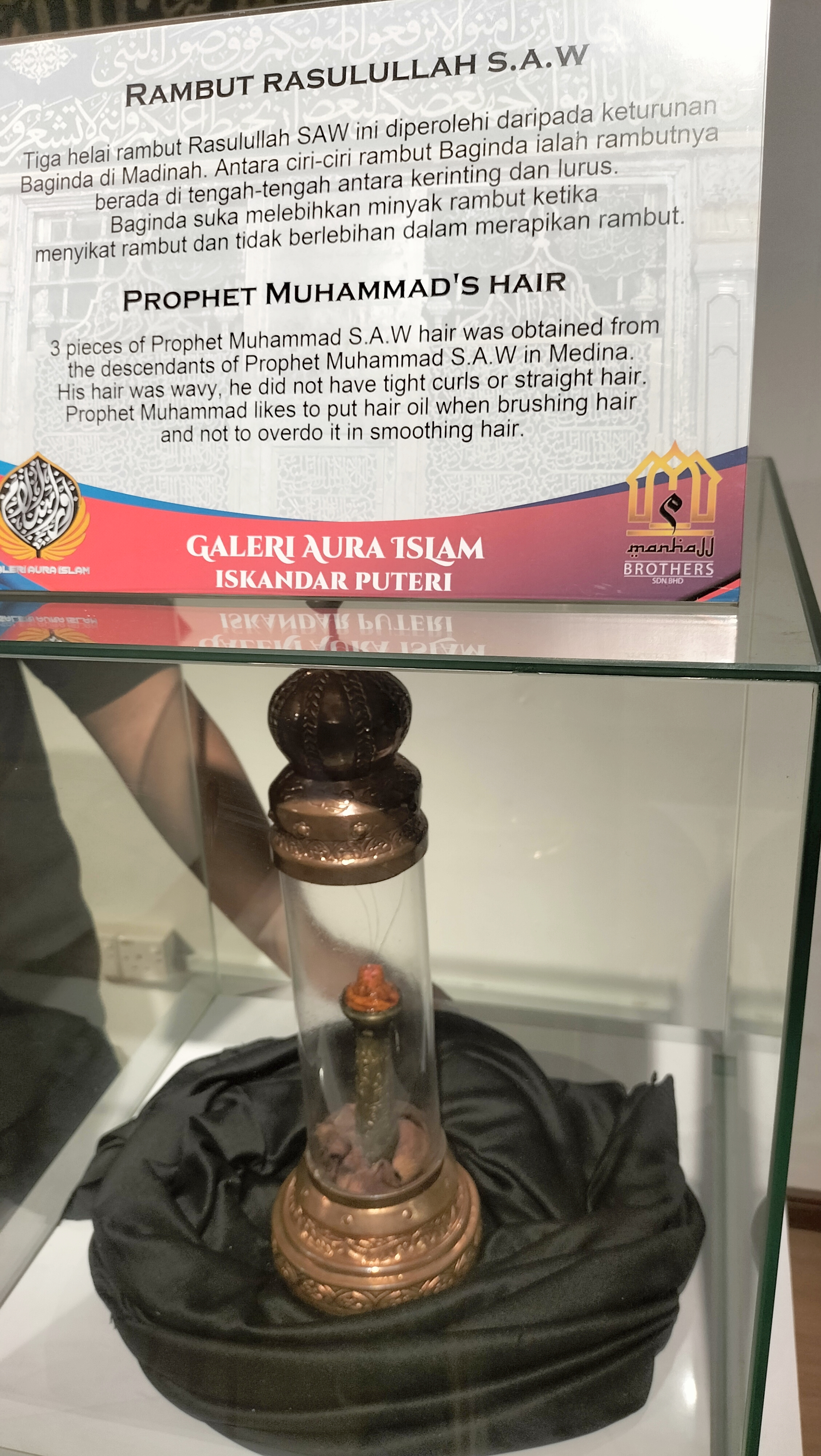 Di tempat ini banyak cerita tentang sejarah Islam. Bahkan di galeri ini, terdapat benda asli milik Nabi Muhammad SAW seperti rambut dan janggut, serta artefak milik Sayyidina Hassan dan Hussein serta para sahabat.